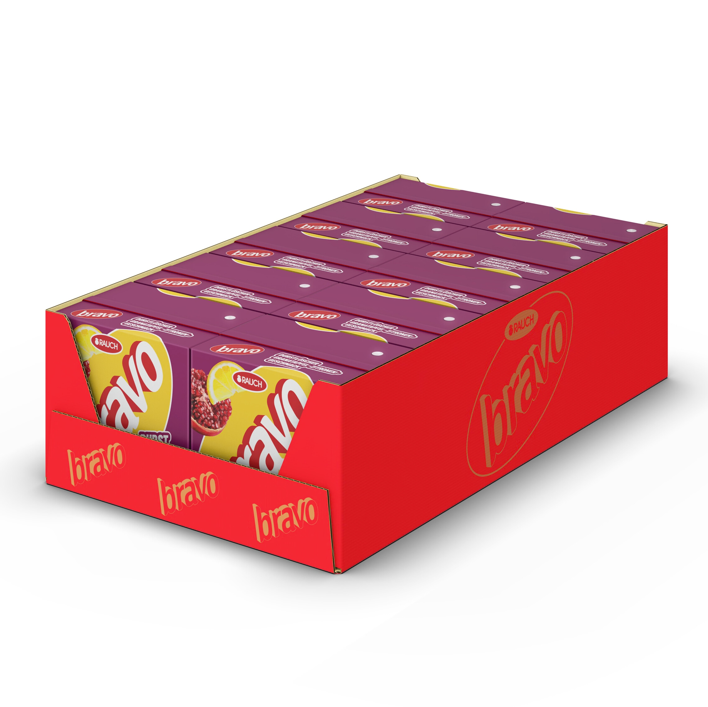 Als fruchtiger Durstlöscher mit Granatapfel-Zitronen-Geschmack steht Bravo für echten Trinkspaß, unkomplizierte Erfrischung und intensiven Geschmack, der den Alltag belebt. Ideal für jede Gelegenheit, wenn schnelle Erfrischung gefragt ist.