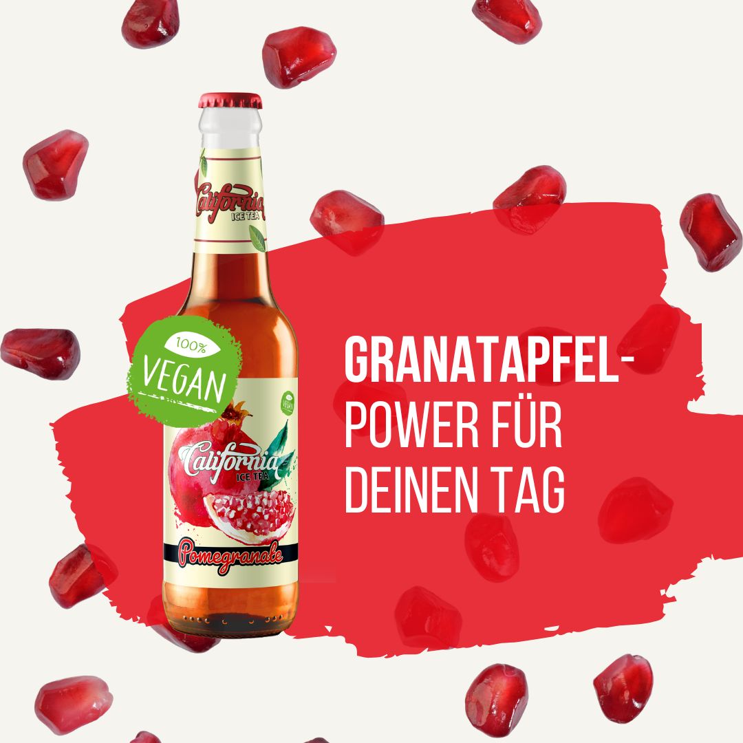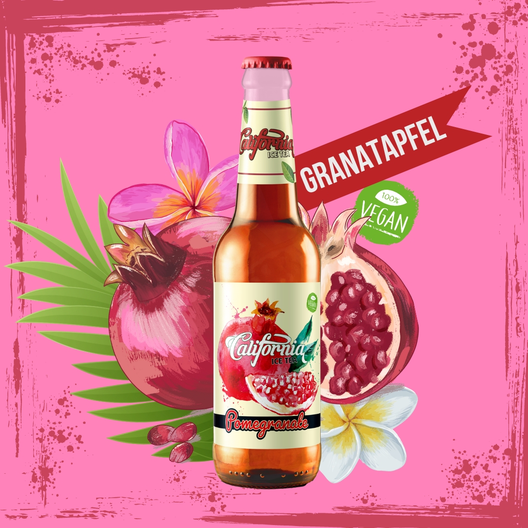 Erlebe California Ice Tea Pomegranate mit seinem intensiv-fruchtigen Granatapfelgeschmack, leicht herb, angenehm süß und perfekt für eine erfrischende Pause zu jeder Tageszeit.