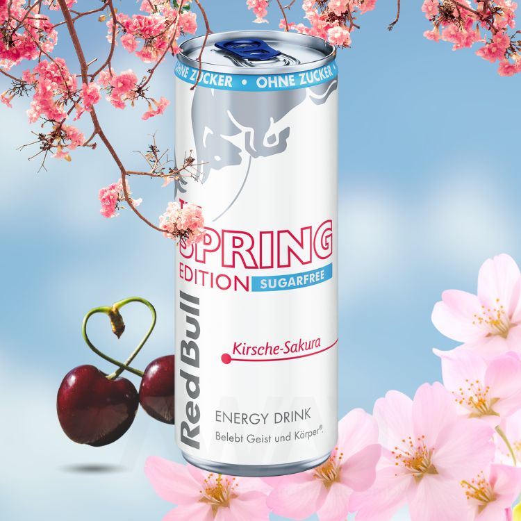 Red Bull Energy Drink Kirsche-Sakura Sugarfree kombiniert den intensiven Geschmack saftiger Kirschen mit einer feinen, floralen Sakura-Note ganz ohne Zucker. Die neue zuckerfreie Sorte überzeugt mit einem klaren, frischen Aroma und einer angenehmen Leichtigkeit, die belebt, ohne schwer zu wirken.